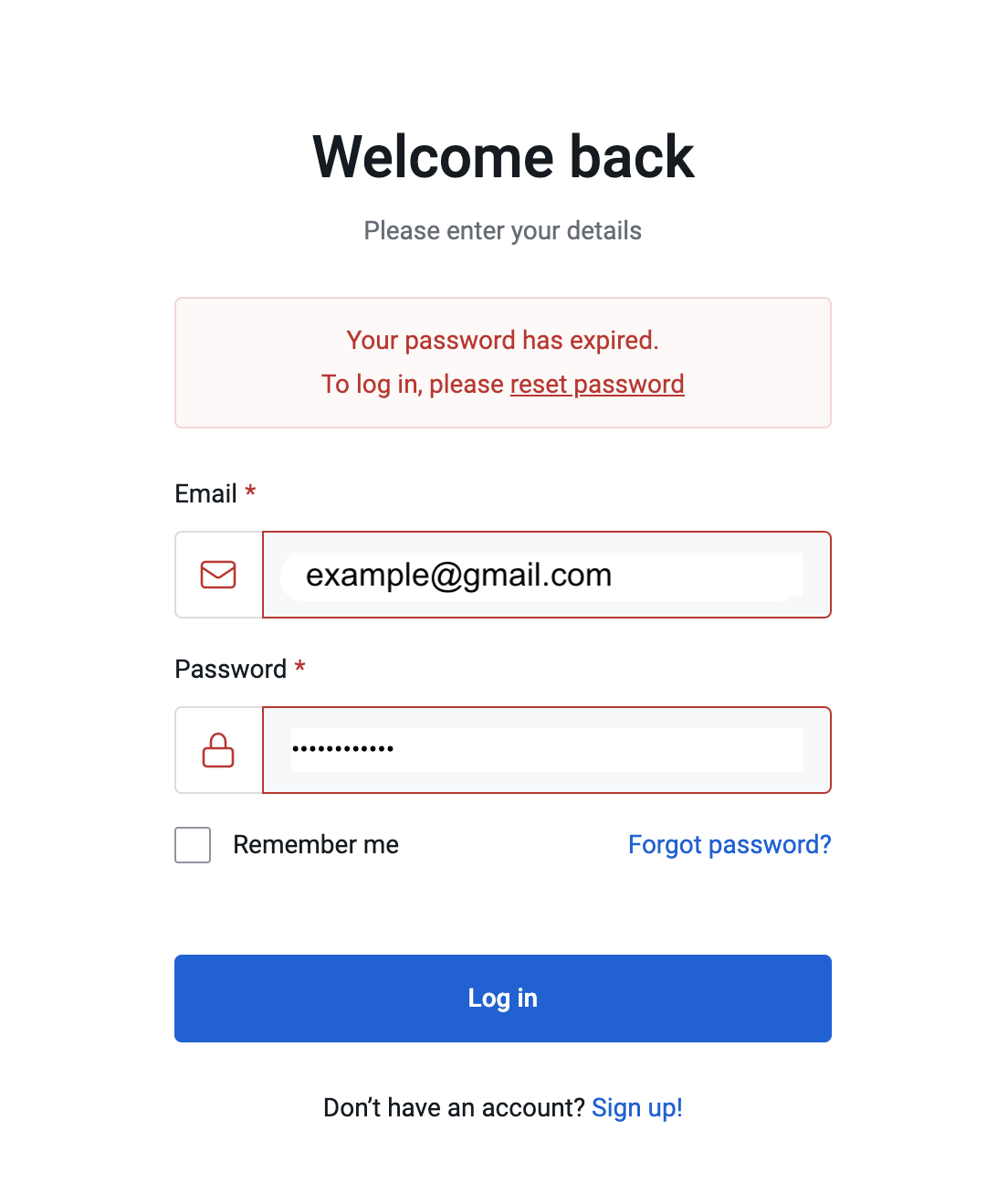 - Go to the login page and attempt to log in with your existing credentials. If your password has expired, you will see a notification.