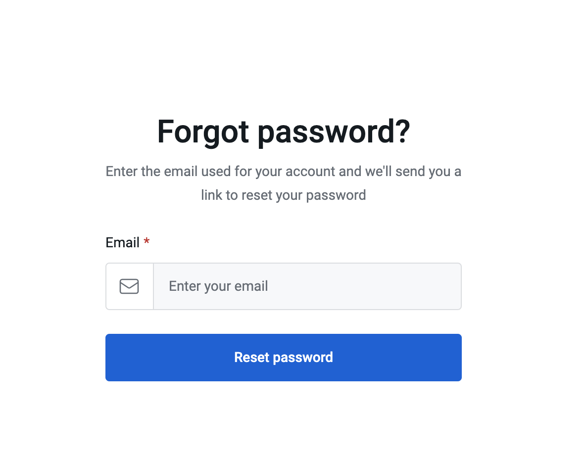 - Press the Reset password link to trigger the reset process. An email with a password reset link will be sent to your login email address. The link leads you to the Forgot password page.