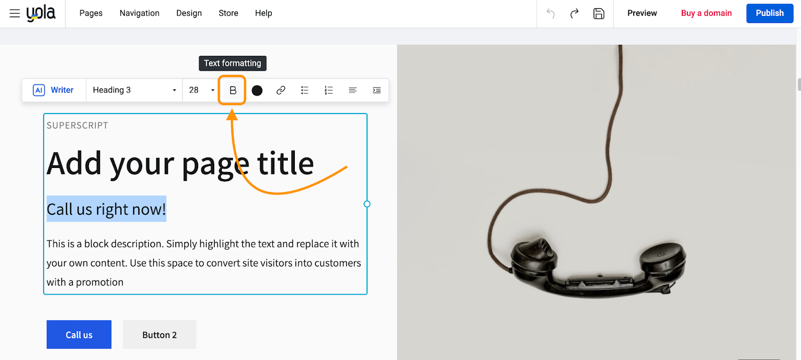 - Click the Text formatting icon to open the text formatting pane.