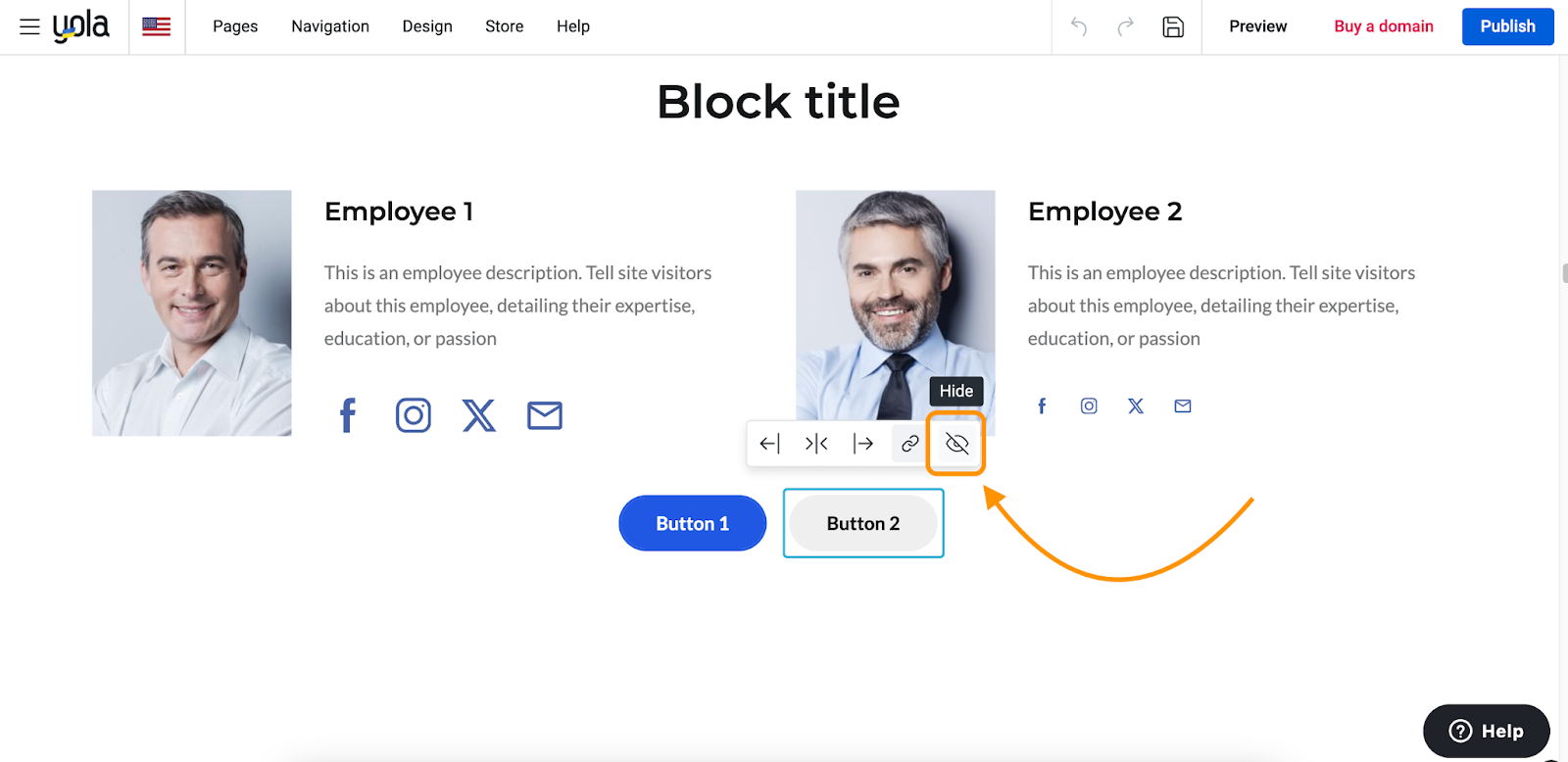 Note: If you accidentally delete a button, you can bring it back by ticking its checkbox in the Block settings. You can also use the Undo action on the Topbar.
